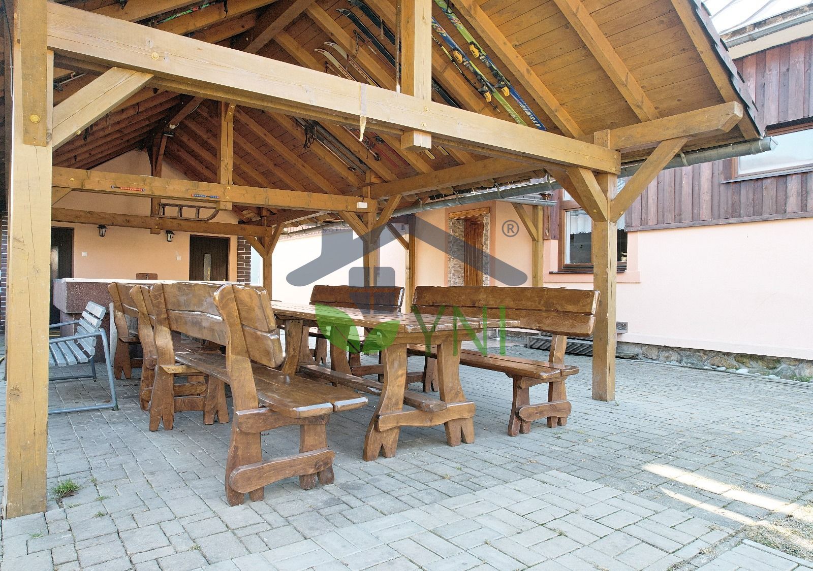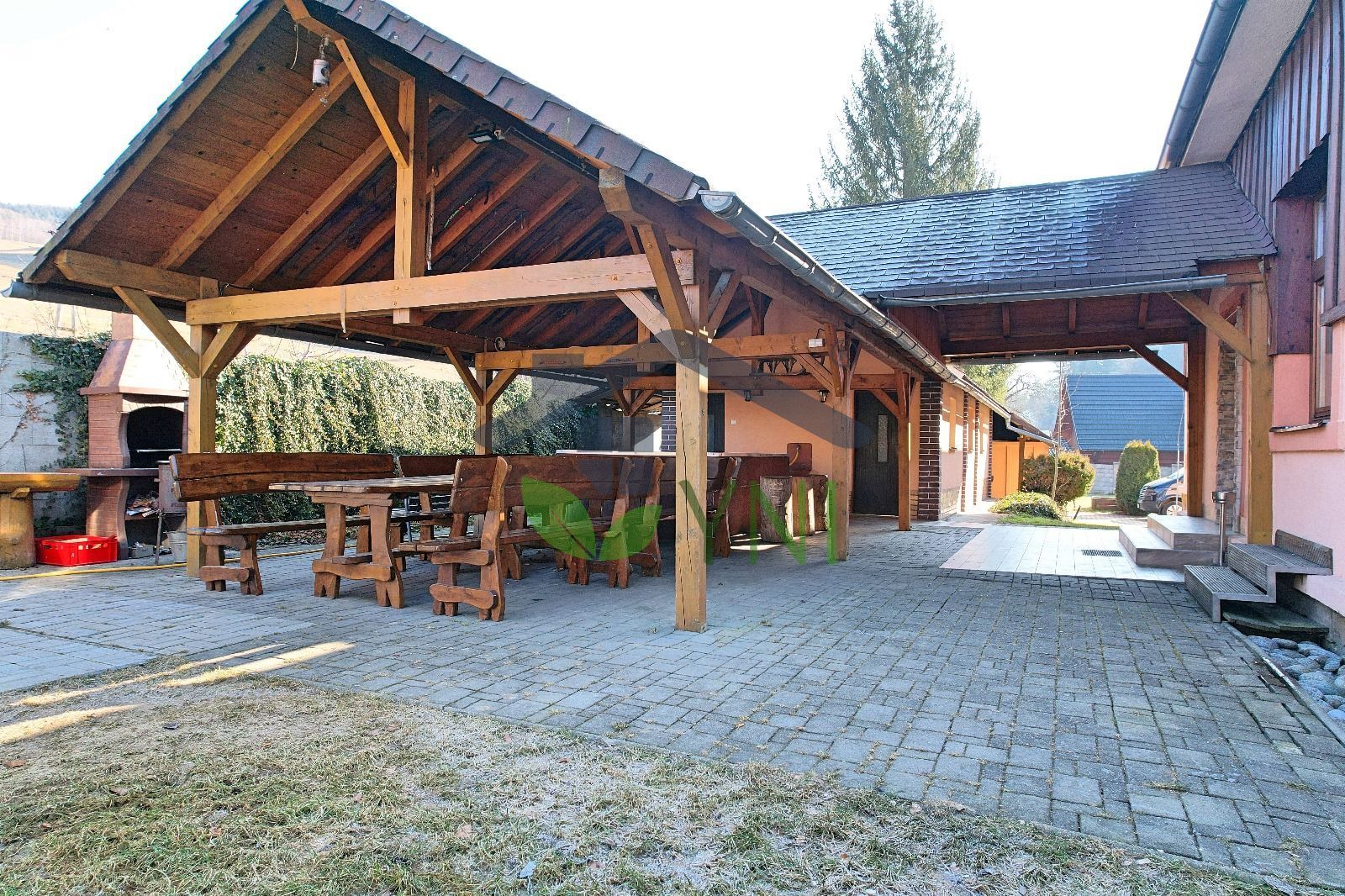 YNI reality Vám exkluzívne ponúka na predaj:nSamostatne stojaci objekt na liste vlastníctva definovaný ako Rodinný dom so zastavanou plochou až 345 m2, ktoré tvorí aj príslušenstvo – veľká spoločenská miestnosť (až cca 70 m2) + technická budova a garáž. Celý objekt bol v rokoch 2006 – 2007 renovovaný a čiastočne modernizovaný. nnObjekt sa dlhodobo využíva na rekreačne účely (prenájom) – stála klientela, permanentná celoročná rezervácia víkendov (takmer 100% počas roka), popr. i možnosť týždenných pobytov, ktorá prináša danému objektu SLUŠNÝ PASÍVNY PRÍJEM. nnObjekt je čiastočne podpivničený, jednopodlažný s podkrovím. Dispozične pozostáva zo zádveria, vstupnej chodby, kuchyne s komorou, soc. zariadenia, 4 nepriechodných izieb a spoločenskej miestnosti. V podzemnom podlaží sa nachádza miestnosť so zásobníkom TÚV a el. čerpadlom napojeným na vodný zdroj. V podkroví je umiestnená podkrovná izba s vikierom. Z prednej časti objektu je vybudovaná prestrešená terasa s vonkajšími schodmi. Prestrešená je taktiež časť medzi technickou budovou a garážou. Pozemok je rovinatý a slnečný – výmera vrátane zastavanej plochy je 1.832 m2. nnTECHNICKÉ PARAMETRE: nZáklady sú betónové monolitické, podmurovka je betónová s obkladom z prírodného kameňa. Obvodové murivo je murované z keramických tvarníc hr. 45 cm, vnútorné priečky sú tehlové. Stropná konštrukcia je nad jednotlivými podlažiami železobetónová monolitická, v podkroví je vyhotovený obklad dreveným tatranským profilom. Elektroinštalácia – meď. Konštrukcia schodiska z I. PP na I. NP je železobetónová s povrchovou úpravou z cementového poteru, z I. NP do podkrovia je drevená s nástupnicami a podstupnicami z mäkkého dreva. Vnútorné omietky stien a stropov sú hladké vápenné, v obytných izbách a v chodbe sú vyhotovené obklady stien z drevotrieskových dosiek. Vonkajšie omietky sú hladké akrylátové. Nosnú konštrukciu strechy tvorí sedlová strecha s valbami a strešnými vikiermi, nad terasou v tvare pultovej strechy s krytinou z pozinkovaného plechu. Krov – drevo/plech + čiastočne zateplená, v celom objekte je zateplený strop – polystyrén + stirodur. Klampiarske konštrukcie sú z taktiež z pozinkovaného plechu. Vchodové dvere sú drevené masívne, vnútorné hladké v oceľových zárubniach. Vykurovanie objektu je lokálne elektrickými konvektormi a krbom na tuhé palivo. Teplá úžitková voda je pripravovaná v elektrickom zásobníku TÚV umiestnenom v I. PP. Objekt má bleskozvod, je napojený na inžinierske siete v rozsahu rozvodov elektrickej energie, rozvodov vody z vlastného zdroja – rozvod studenej a teplej vody z lokálnych ohrievačov a splašková kanalizácia je odvádzaná do vlastnej žumpy. nnTechnická budova – sa nachádza vedľa rodinného domu. Je napojená na inžinierske siete v rozsahu rozvodov el. energie, vody a kanalizácie. V roku 2006 – 2007 bola taktiež čiastočne zrenovovaná. Stavba nie je podpivničená, využíva sa z časti ako dielňa, z časti so saunou a odpočivárňou. Základy sú betónové monolitické, obvodové murivo nadzemnej časti je vyhotovené z tehál hr. 30 cm., vnútorné priečky sú tehlové. Vykurovanie stavby je lokálne prostredníctvom akumulačných kachlí. nnPrístrešok – drevený prístrešok je vybudovaný nad komunikačnou plochou medzi rodinným domom a drobnou stavbou. Drevené stĺpy sú osadené do základových pätiek, krytina na sedlovej streche je z asfaltového šindľa, klampiarske konštrukcie sú z pozinkovaného plechu. nnGarážový prístrešok – je vybudovaný medzi drobnou stavbou a skladom náradia v roku 2010. Drevené stĺpy sú osadené do základových pätiek, krytina na sedlovej streche je z asfaltového šindľa, klampiarske konštrukcie sú z pozinkovaného plechu. nnSklad náradia (drobná stavba) – sa nachádza vedľa rodinného domu. Bol vybudovaný v roku 2010 ako prefabrikovaná betónová garáž. Objekt je prízemný bez podpivničenia. Aktuálne sa využíva ako sklad záhradného náradia. Základy stavby sú betónové pätky, obvodové murivo – betónové prefabrikované. Podlahy sú z betónovej mazaniny. Zastrešenie objektu je riešené dreveným krovom sedlového tvaru, krytina na krove je z asfaltového šindľa, žľaby a zvody sú z pozinkovaného plechu. nnVÝHODY a VYUŽTIE:n•tRozšírenie investičného zamerania – pri aktívnom prenajímaní možnosť rozšírenia konceptu aj počas pracovných dní, čo zaručí vyššie výnosové percento z prenájmov n•tObjekt je tiež vhodný pre firmy ako miesto pre účely profesijného vzdelávania pre zamestnancov v spojení s rekreáciou n•tMožnosť organizovania školských pobytov n•tMožnosť vybudovania detského/športového ihriska nnNÁKLADY pri aktuálnom prenájme:n•tEnergie + upratovanie a servis pri prenájme cca 500€/mes. nnDODATOČNE INFORMÁCIE:n•tnehnuteľnosť je vedená na FO n•tzabezpečenie kamerovým systémom n•tmožnosť odstúpenia web. stránky a pod pre ďalšie rezervácien•tkapacita 20 osôb n•tcelý objekt je oplotený n•t10x parkovacie miesto – uzavretý areál n•taltánok s príjemným posedením, ohniskom, grilom a vírivkou.